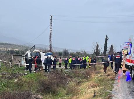 Yenicekent Kavşağı’na yaklaşırken, servis minibüsü şiddetli yağmur nedeniyle kontrolü kaybederek, yolun sağında bulunan üzüm bağına uçtu.